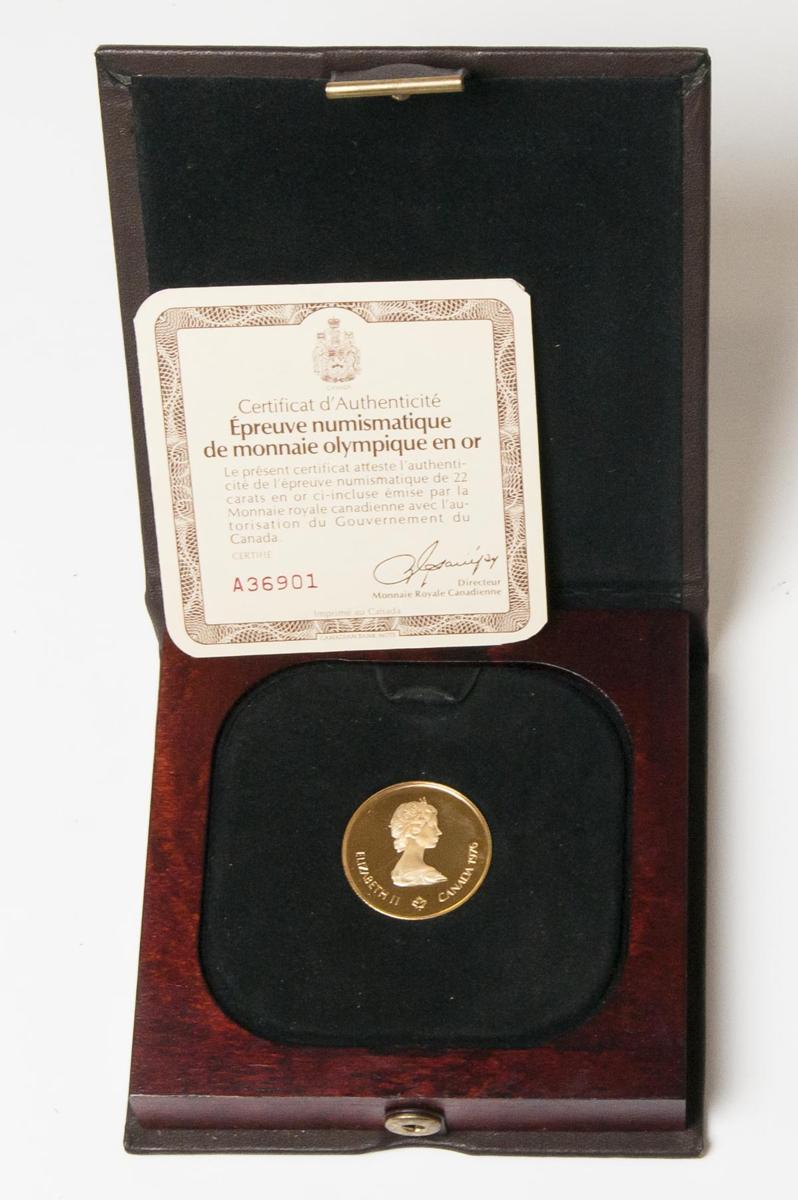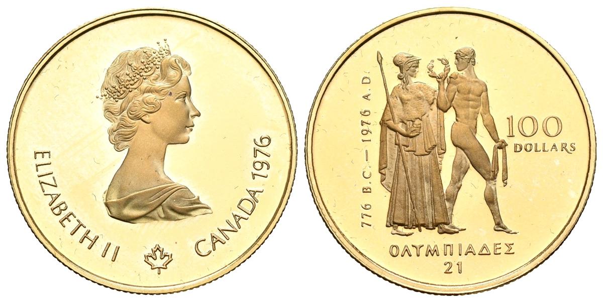 CANADA. Elizabeth II. 100 Dollars. 1976. Juegos Olímpicos de 1976. Km#116. Au. 16,91g. Presentado en estuche oficial con certificado. Rayitas en anverso. PROOF.