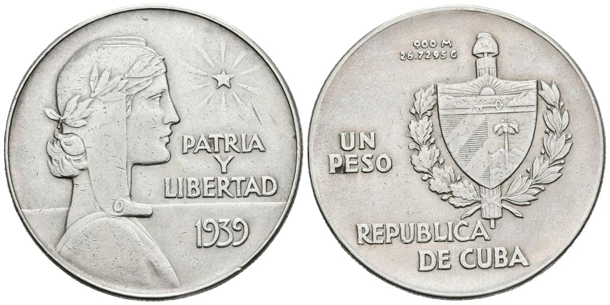 CUBA. 1 Peso. 1939. Km#22. Ar. 26,71g. Marquitas. MBC+.