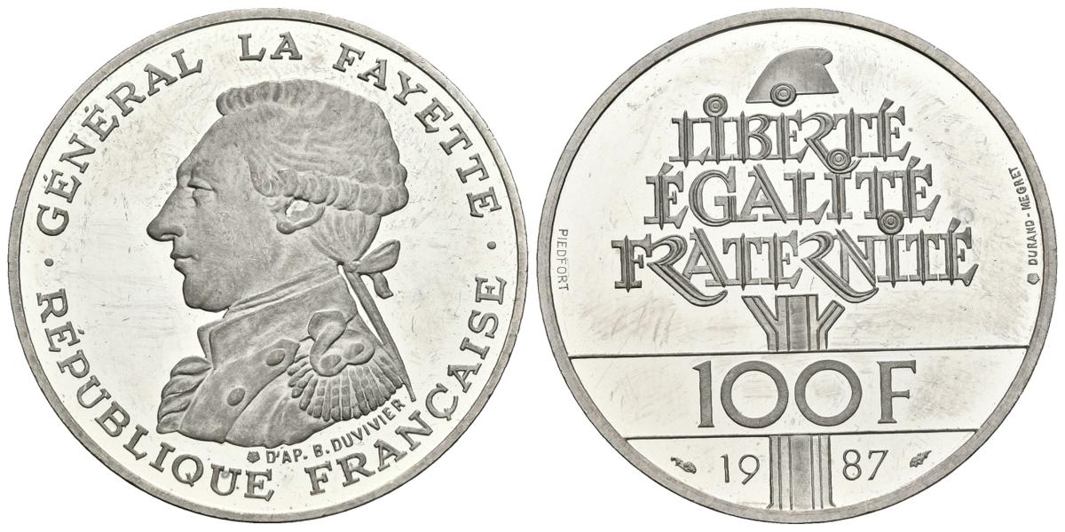 FRANCIA. 100 Francs. 1987. Piefort. General Lafayette. Km#P991. Ar. 30,16g. PROOF.