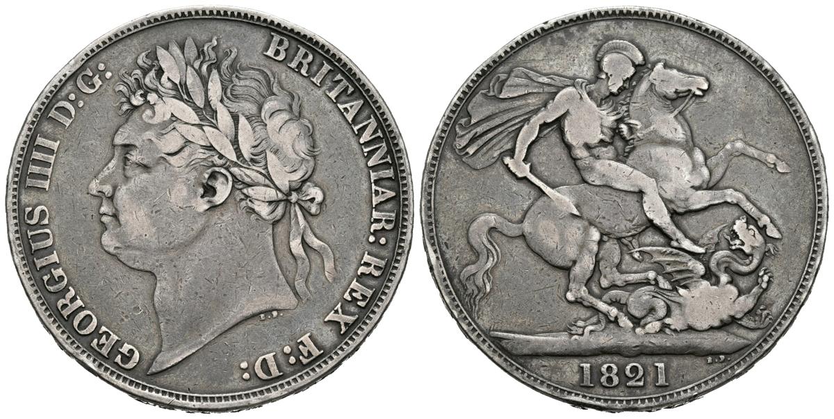 GRAN BRETAÑA. 1 Crown. 1821. SECUNDO en el canto. Km#680.1. Ar. 27,64g. MBC-.