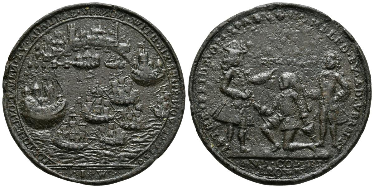 GRAN BRETAÑA. Medalla. Almirante Vernon y Blas de Lezo. 1741. Portobello. Adams-Chao Cavlo 1-B, R.5. Ae. 11,72g. 40mm. MBC-.