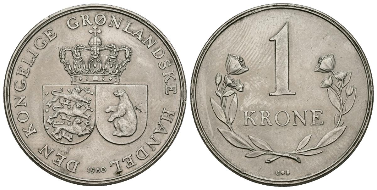 GROENLANDIA. 1 Krone. 1960. Km#10a. Cu-Ni. 7,41g. MBC+.