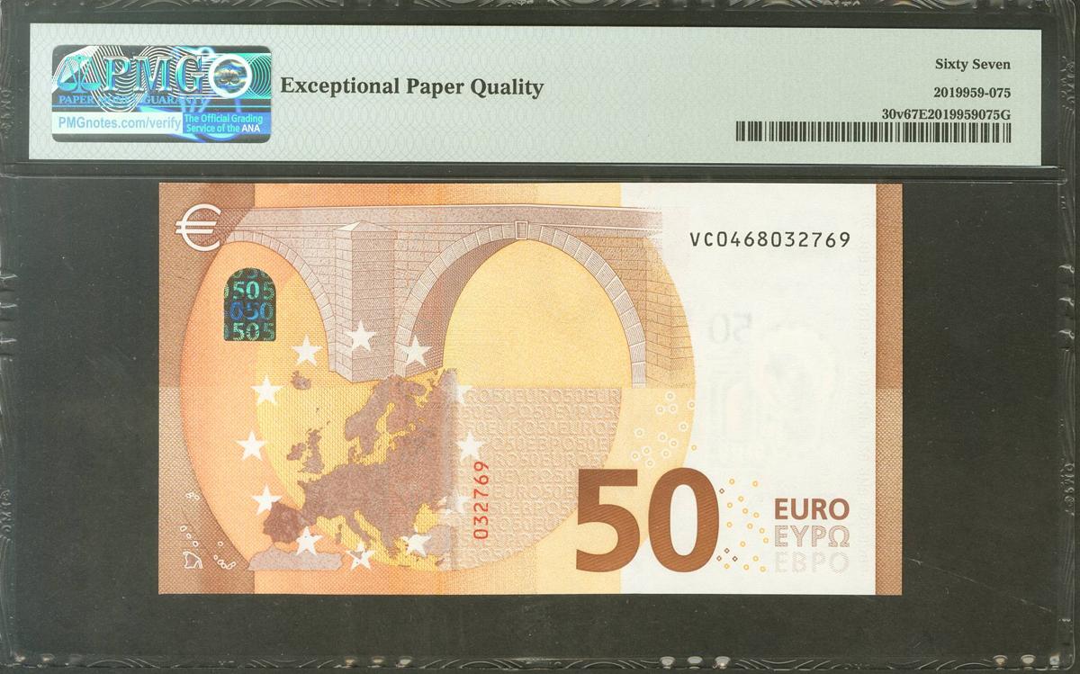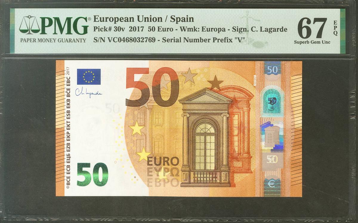 50 euros. April 4, 2017. Signature Lagarde. Series V (Spain). (Edifil 2021: 496A, Pick: 30v). Uncirculated. PMG67EPQ package.