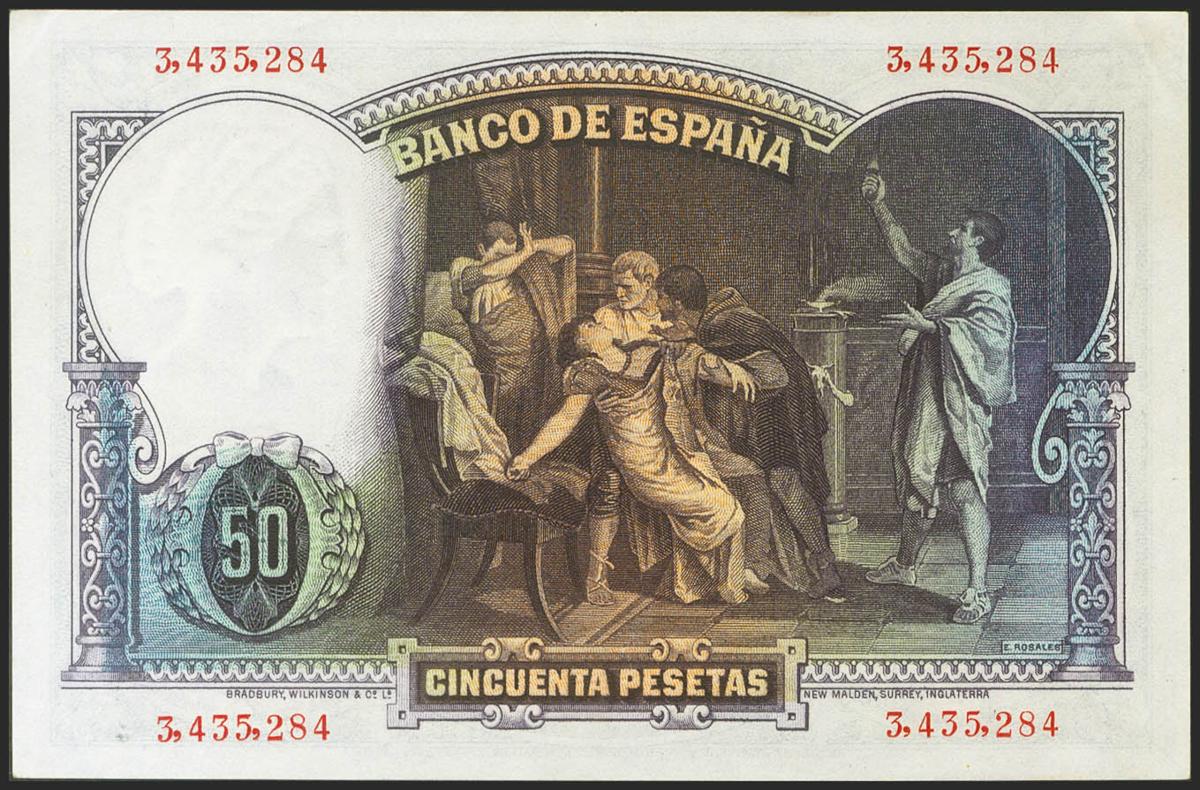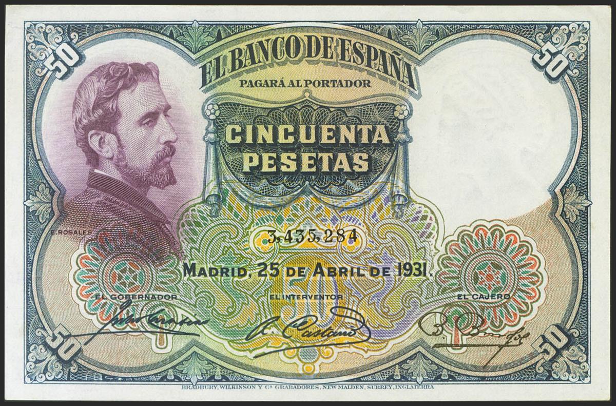 50 pesetas. April 25, 1931. No series. (Edifil 2021: 359). It retains much of its original size. Good Extremely Fine.