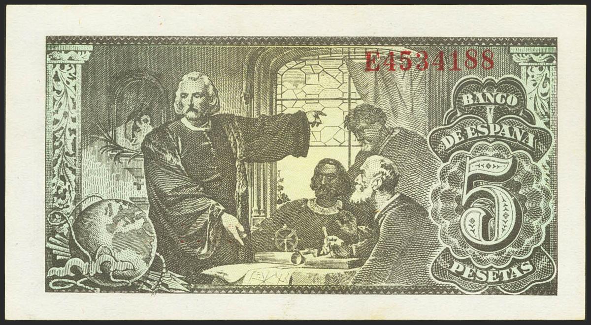 5 pesetas. February 13, 1943. Series E. (Edifil 2021: 446a). original sizing Uncirculated.