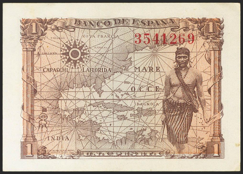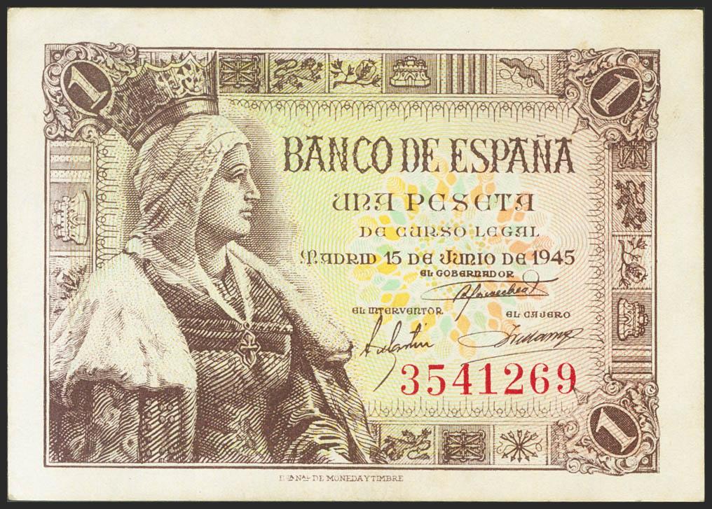 1 peseta. June 15, 1945. No series. (Edifil 2021: 448). original sizing Almost Uncirculated.