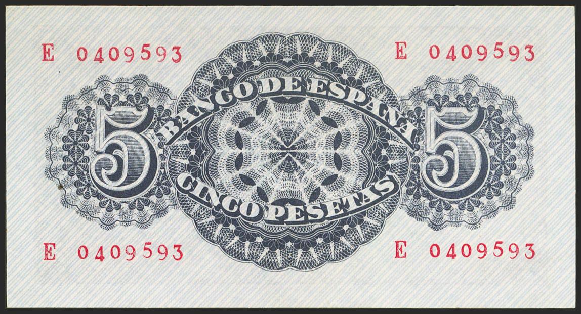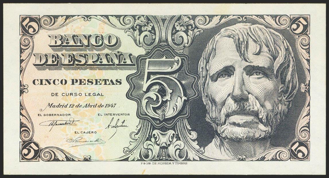5 pesetas. April 12, 1947. Series E, last series issued. (Edifil 2021: 454a). original sizing Uncirculated.