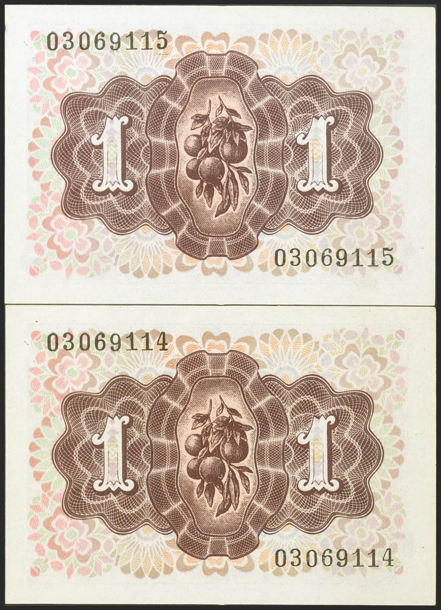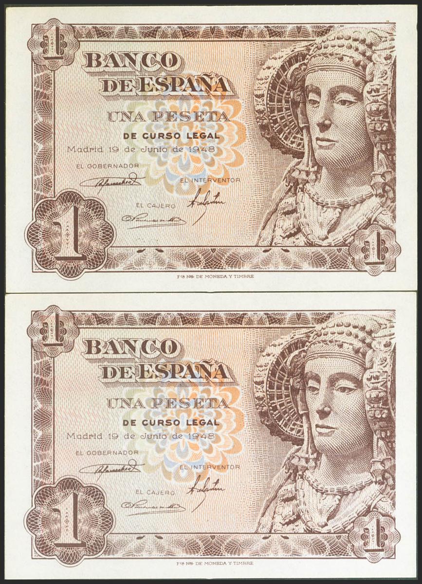 1 peseta. June 19, 1948. Correlative couple. No serie. (Edifil 2021: 457). original sizing Uncirculated.