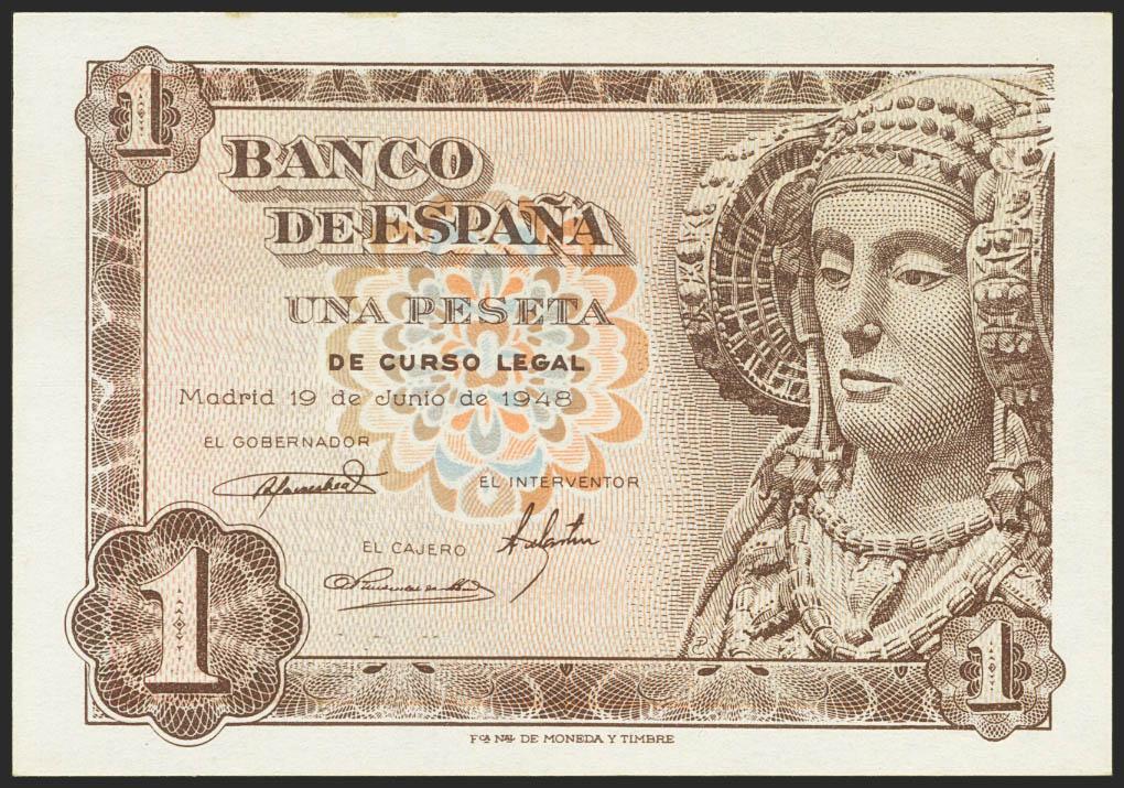 1 peseta. June 19, 1948. Series B. (Edifil 2021: 457a). original sizing Uncirculated.