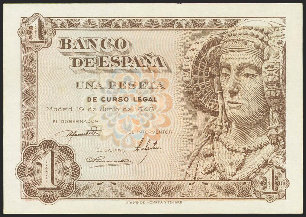 1 peseta. June 19, 1948. Series H. (Edifil 2021: 457a). original sizing Uncirculated.