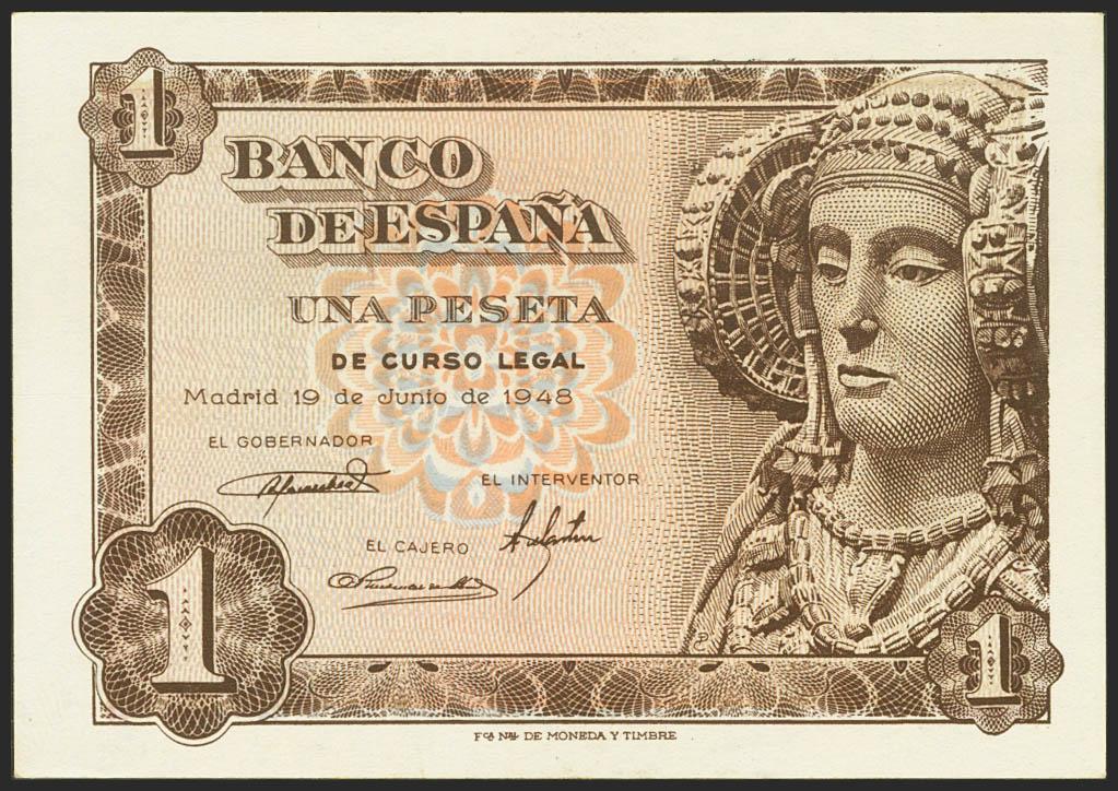 1 peseta. June 19, 1948. Series N. (Edifil 2021: 457a). original sizing Uncirculated.
