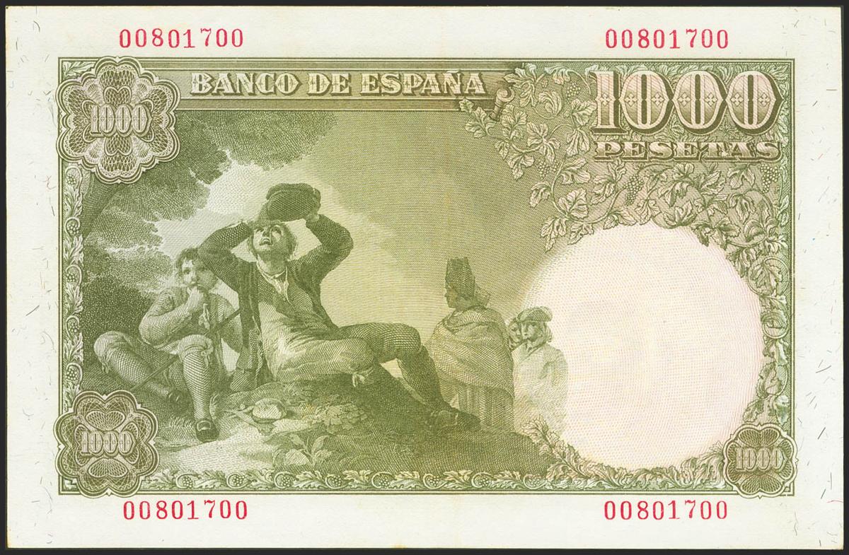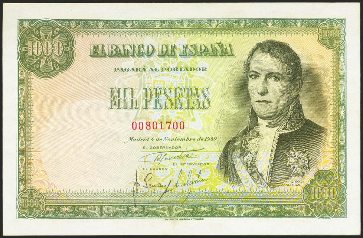 1000 pesetas. November 4, 1949. No series. (Edifil 2021: 458). It retains part of the original sizing. Almost Extremely Fine.