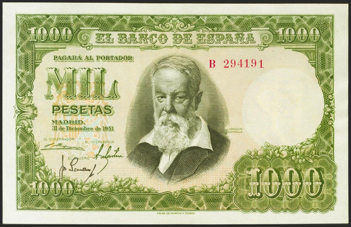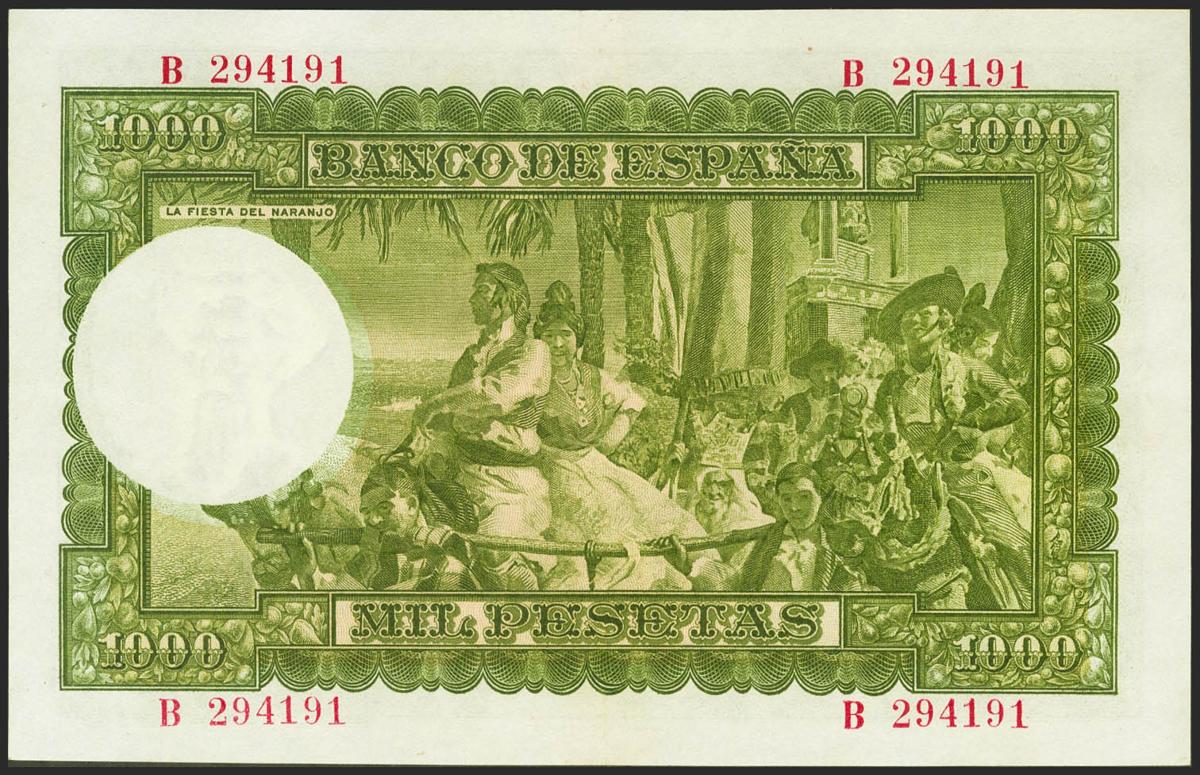 1000 pesetas. December 31, 1951. Series B. (Edifil 2021: 463a). It retains part of the original sizing. Extremely Fine.