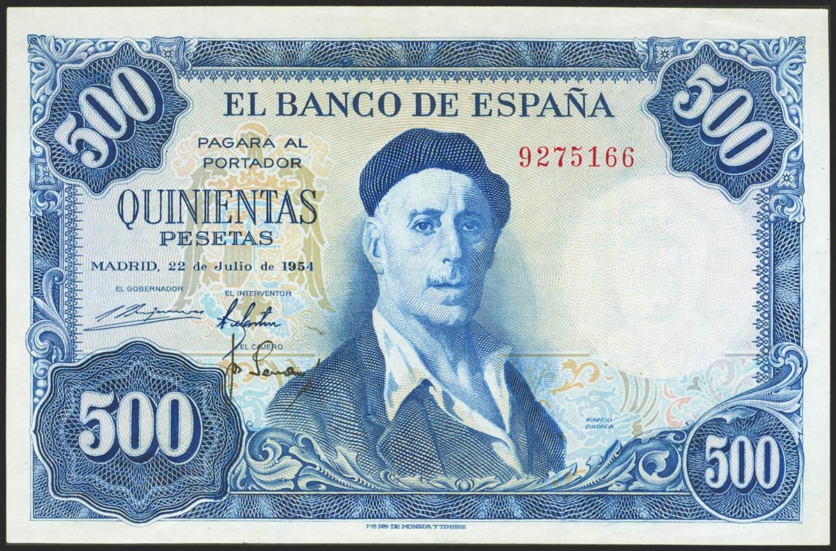 500 pesetas. July 22, 1954. No series. (Edifil 2021: 468). Unusual, it retains all its original sizing. Good Extremely Fine.