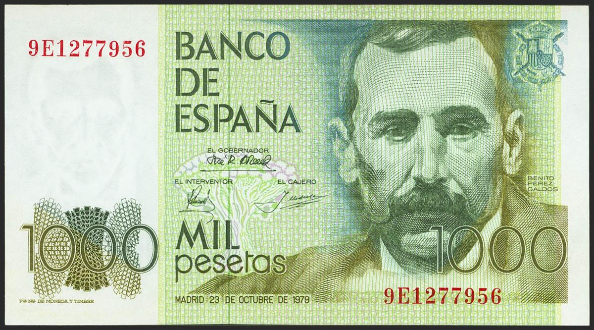 1000 pesetas. October 23, 1979. Special series 9E. (Edifil 2017: 477b). Very rare, it has a slight undulation that does not break the fiber. EBC+++.