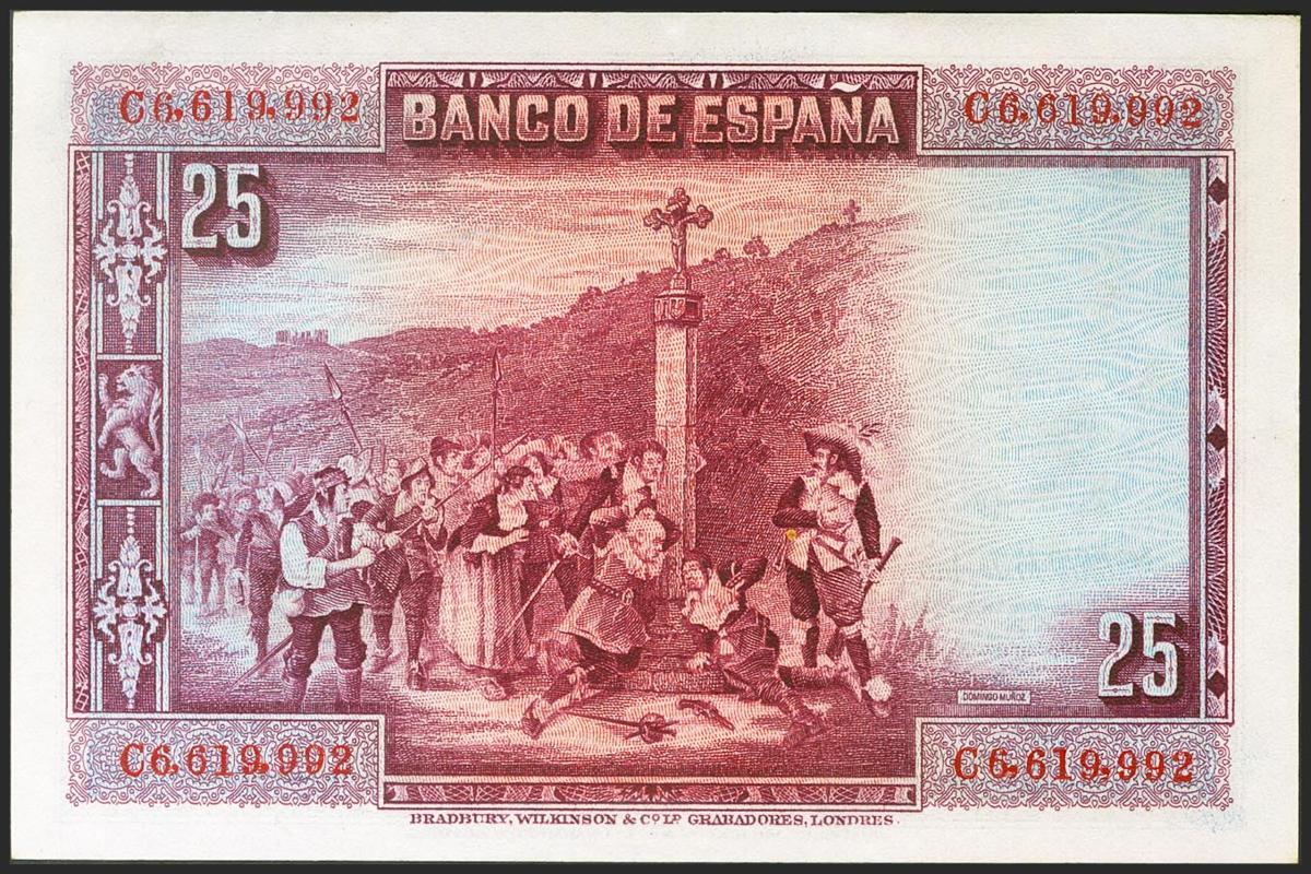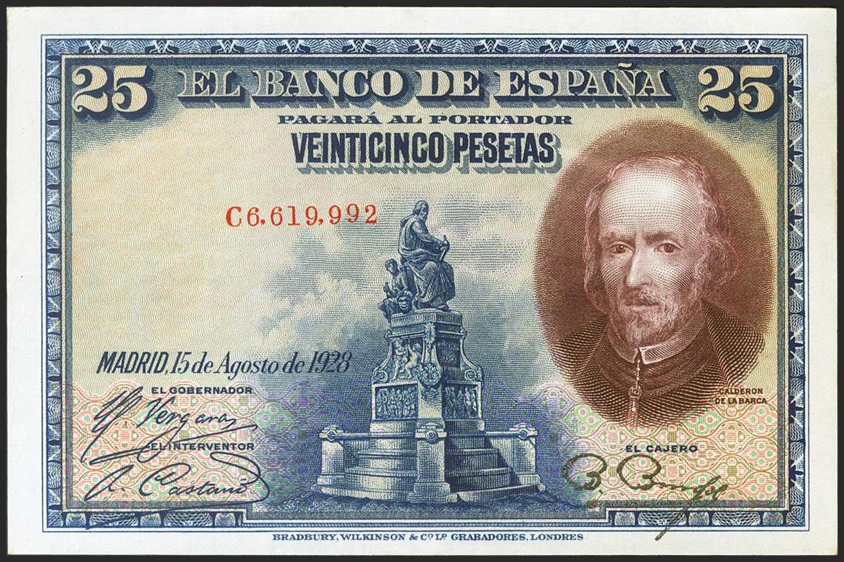 English 25 pesetas. August 15, 1928. Series C. (Edifil 2021: 353). original sizing Almost Uncirculated.
