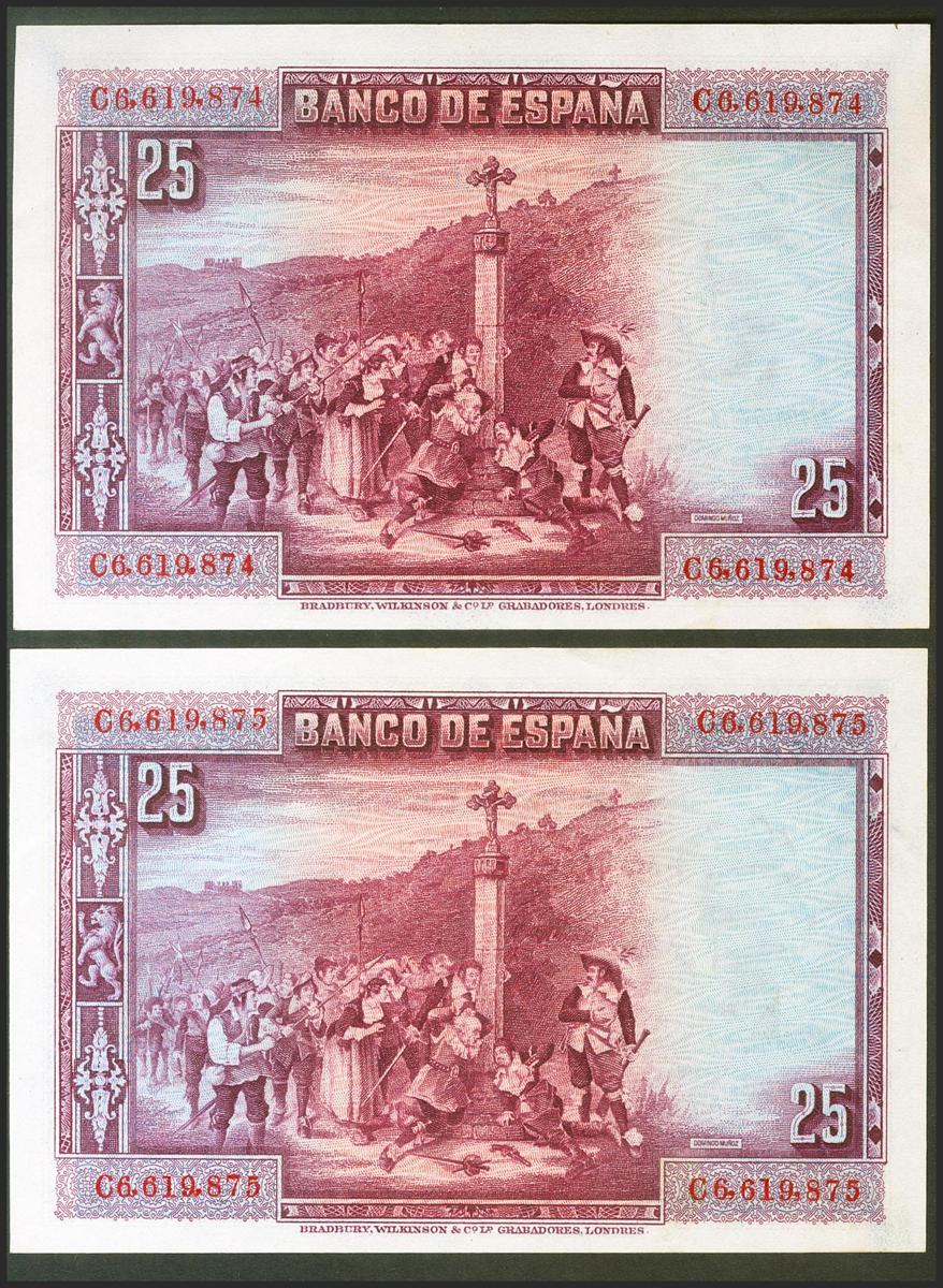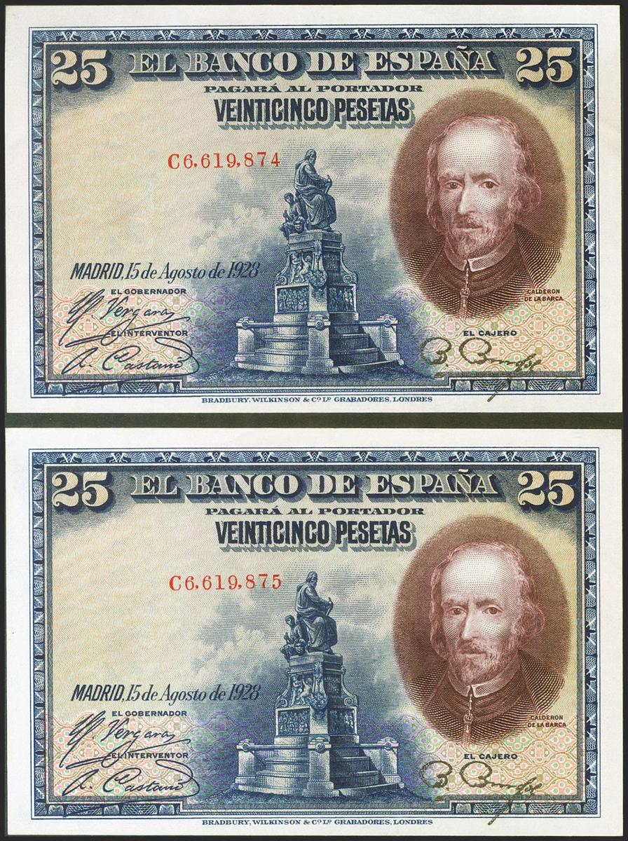 English 25 pesetas. August 15, 1928. Correlative couple. Series C. (Edifil 2021: 353). original sizing Almost Uncirculated.