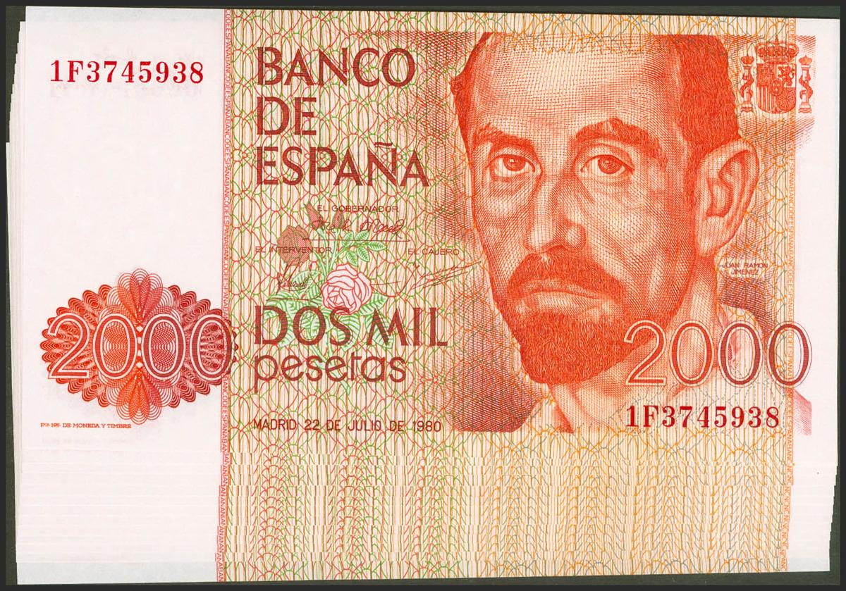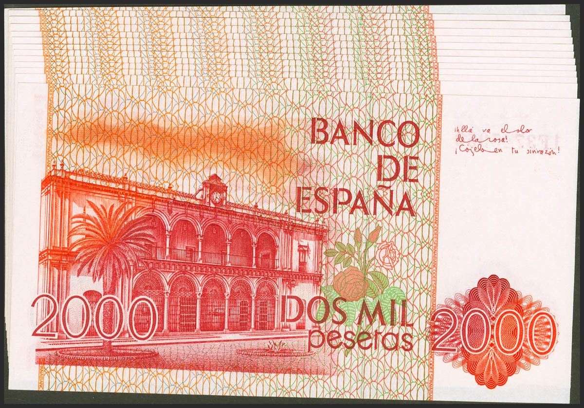 Set of 13 correlative banknotes of 2000 Pesetas issued on July 22, 1980, all of them with the 1F series (Edifil 2021: 479a). Uncirculated/ Almost Uncirculated.
