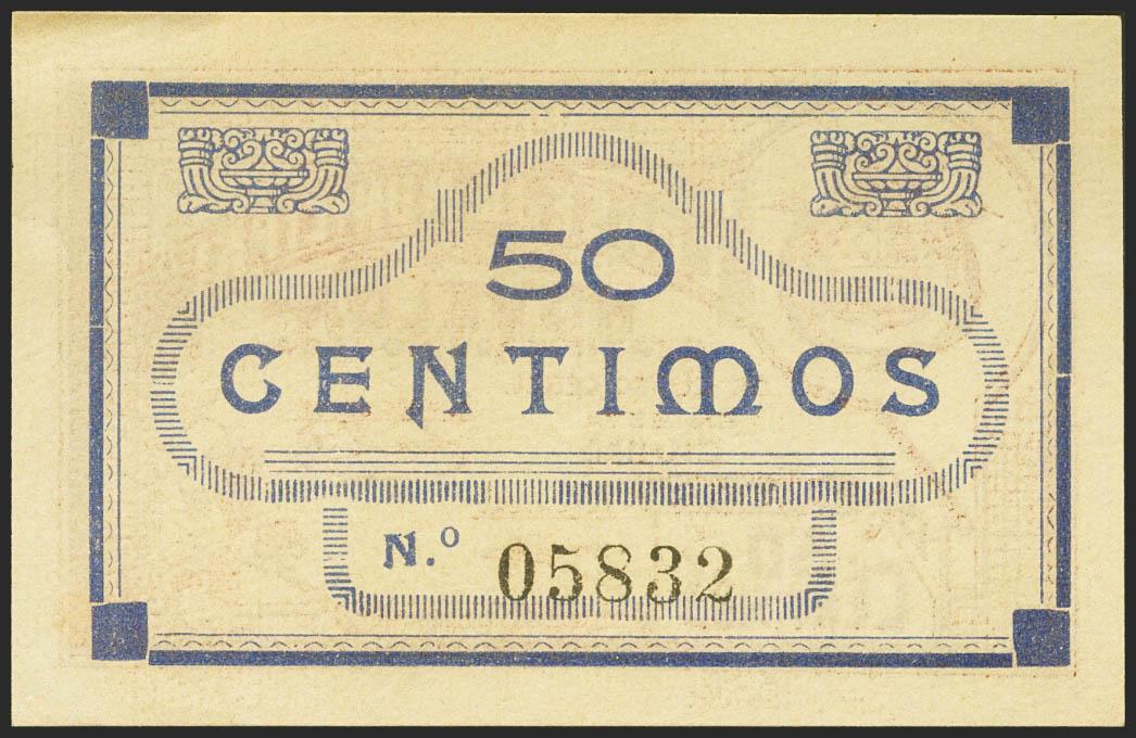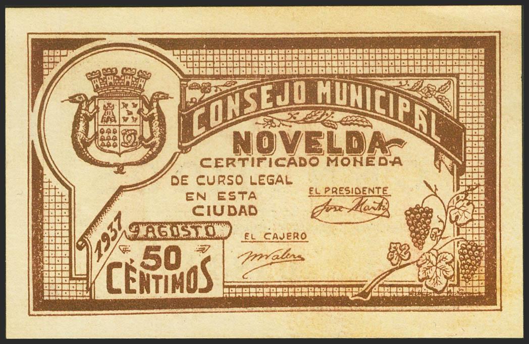 NOVELDA (ALICANTE). 50 cents. August 1937. (González: 3867). Extremely Fine.