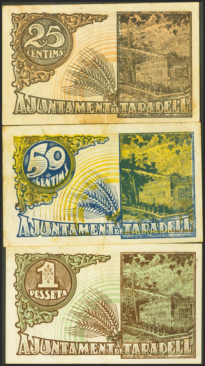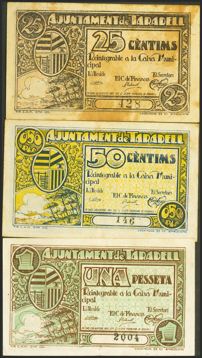 TARADELL (BARCELONA). 25 Cents, 50 Cents and 1 Peseta. (1937ca). (Gonzalez: 10082/84). Complete series. Extremely Fine/ Almost Extremely Fine.