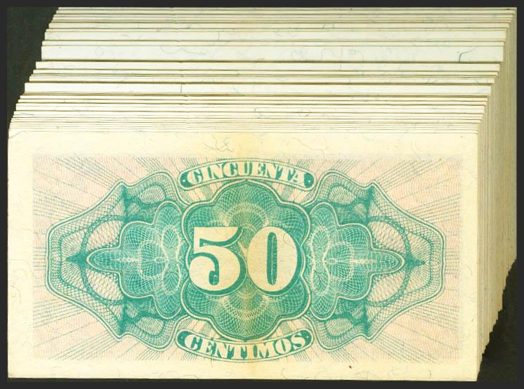 Set of 100 correlative bills of 50 Centimos issued in 1937 with series B, (Edifil 2021: 391), preserving all its original packaging, the front cover of the original factory seal is preserved. Uncirculated/ Almost Uncirculated.