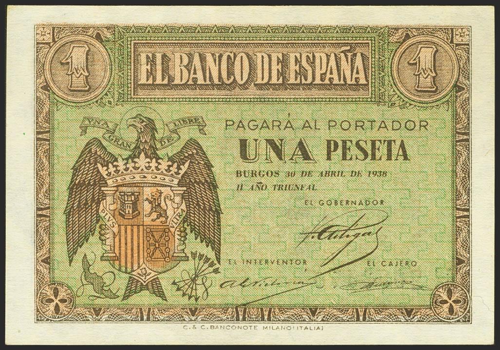 1 peseta. April 30, 1938. Series M. (Edifil 2021: 428a). original sizing Uncirculated.