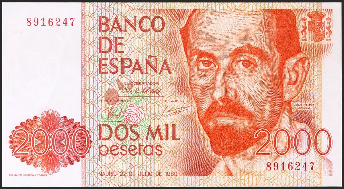 2000 pesetas. July 22, 1980. No series. (Edifil 2021: 479). Uncirculated.