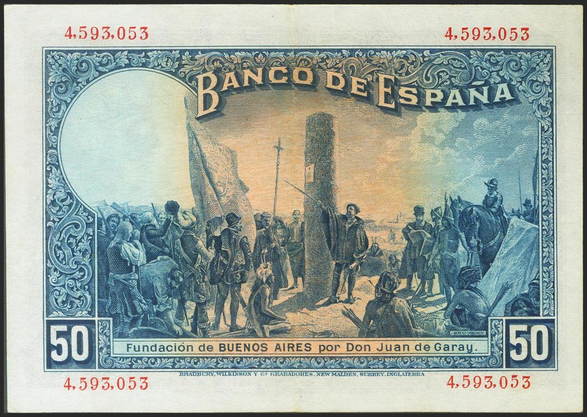 50 pesetas. May 17, 1927. Without series. (Edifil 2021: 326, Pick: 72a). Rare in this quality, it retains part of its original sizing. Extremely Fine.