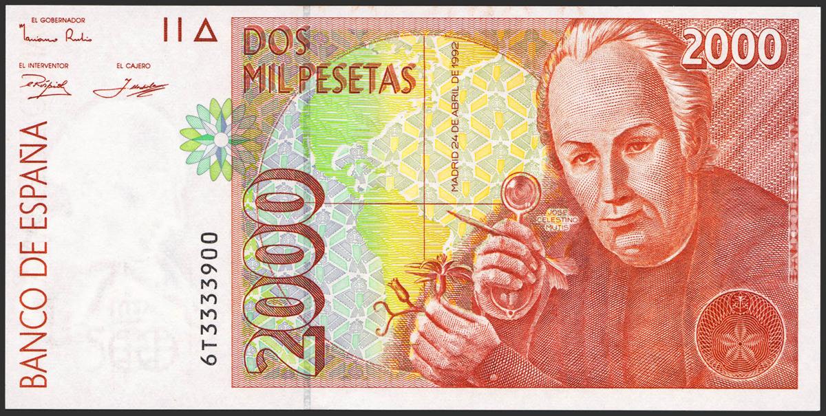 2000 pesetas. April 24, 1992. Series 6T. (Edifil 2021: 482Aa). Almost Uncirculated.
