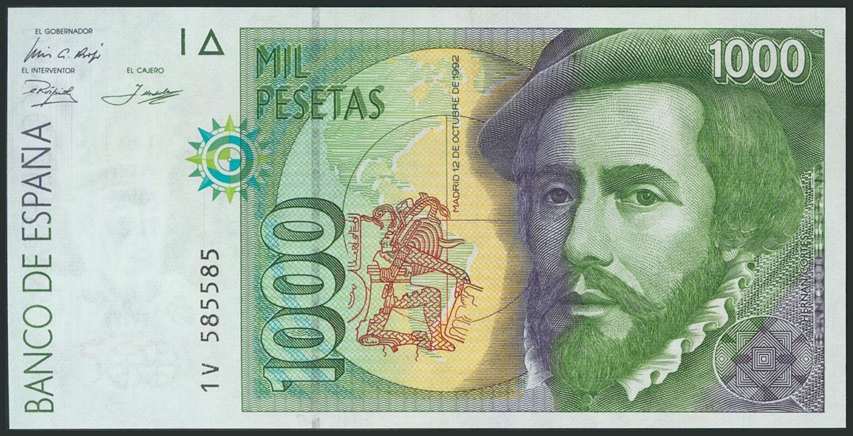 English 1000 pesetas. October 12, 1992. Type II. Series 1V and palindrome numbering. (Edifil 2017: 483b). Uncirculated.
