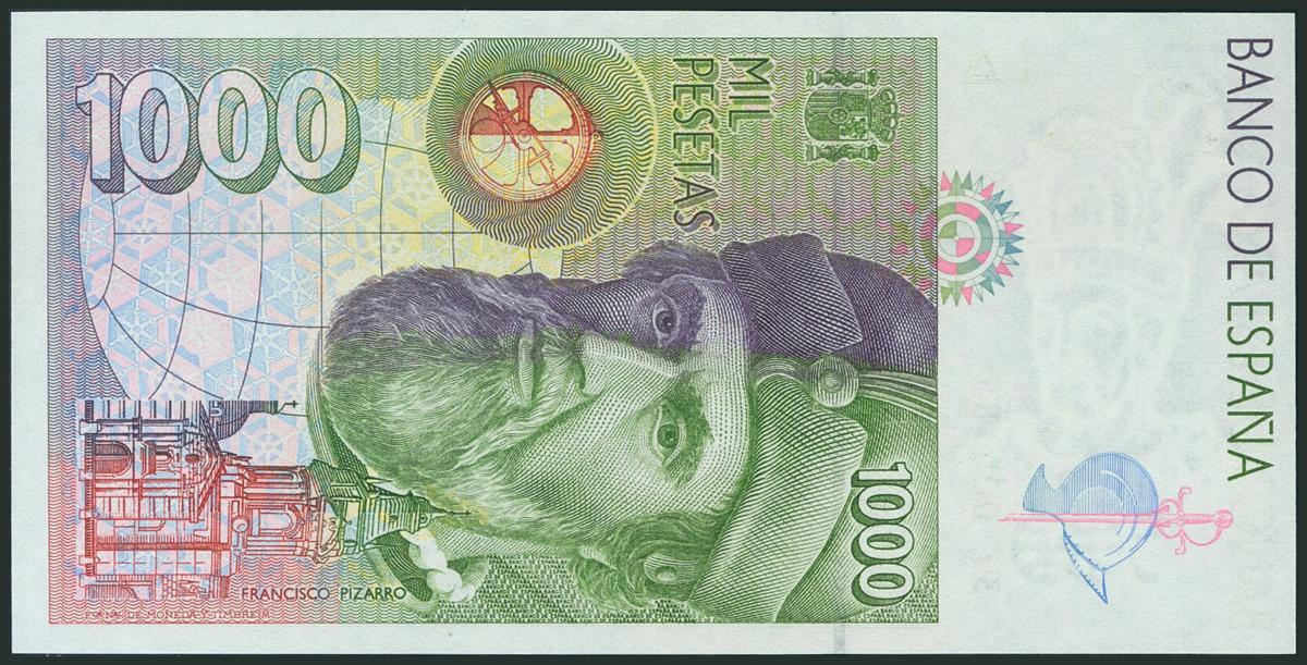 1000 pesetas. October 12, 1992. Type II. Series 3Y and low and palindromic numbering. (Edifil 2017: 483b). Uncirculated.
