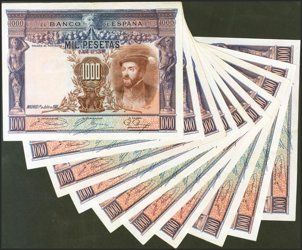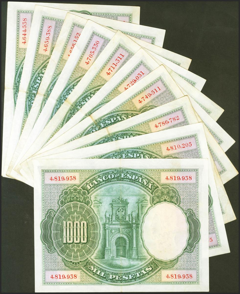 Set of 10 1000 Pesetas bills issued on July 1, 1925, series after 3646000 (Edifil 2017: 351). Almost Extremely Fine/ Good Very Fine.