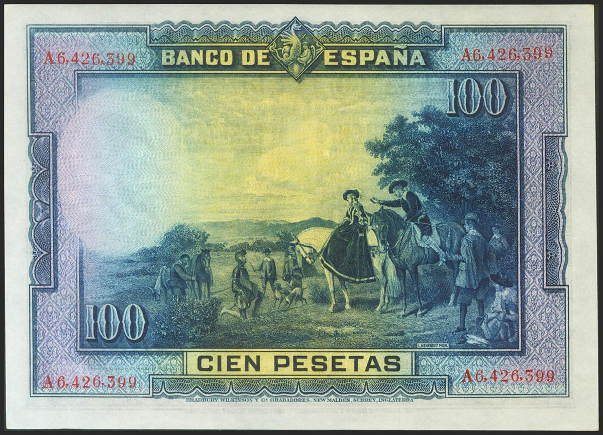 100 pesetas. August 15, 1928. Series A. (Edifil 2021: 355a). original sizing Uncirculated.