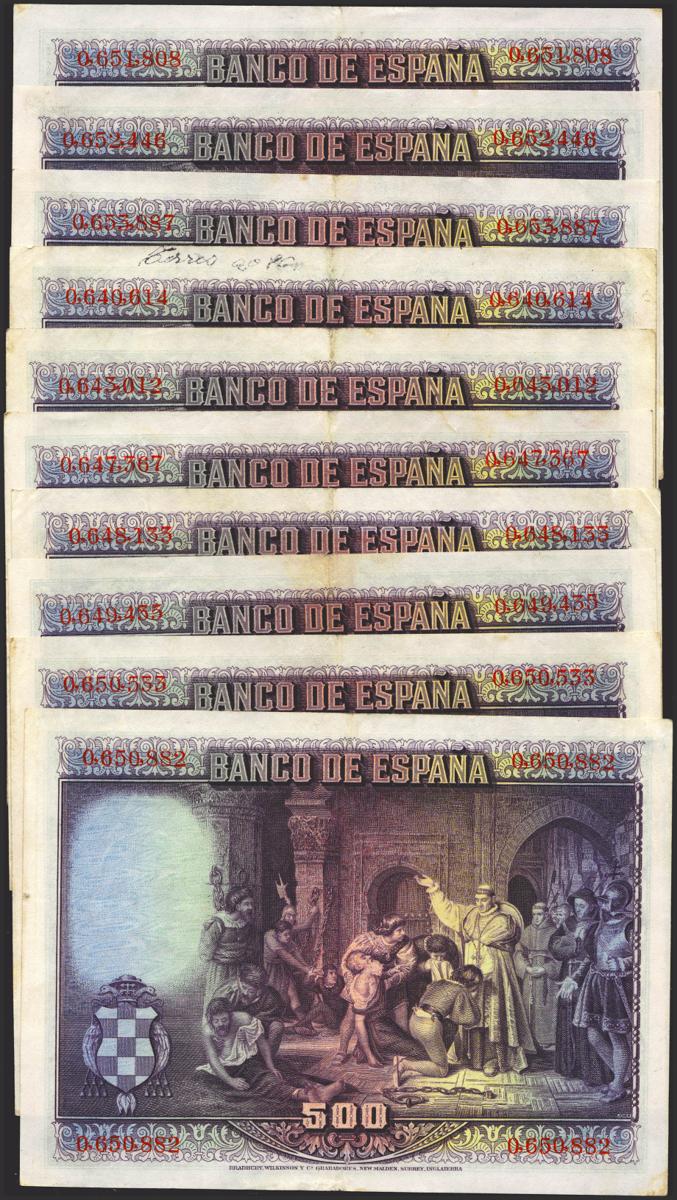Precious set of 10 500 Pesetas banknotes issued on August 15, 1928, without series (Edifil 2021: 356). Good Very Fine/ Almost Very Fine.