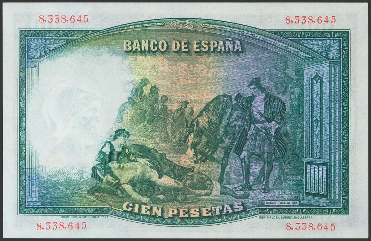 100 pesetas. April 25, 1931. No series. (Edifil 2017: 360). It retains all its original sizing. Almost Uncirculated.
