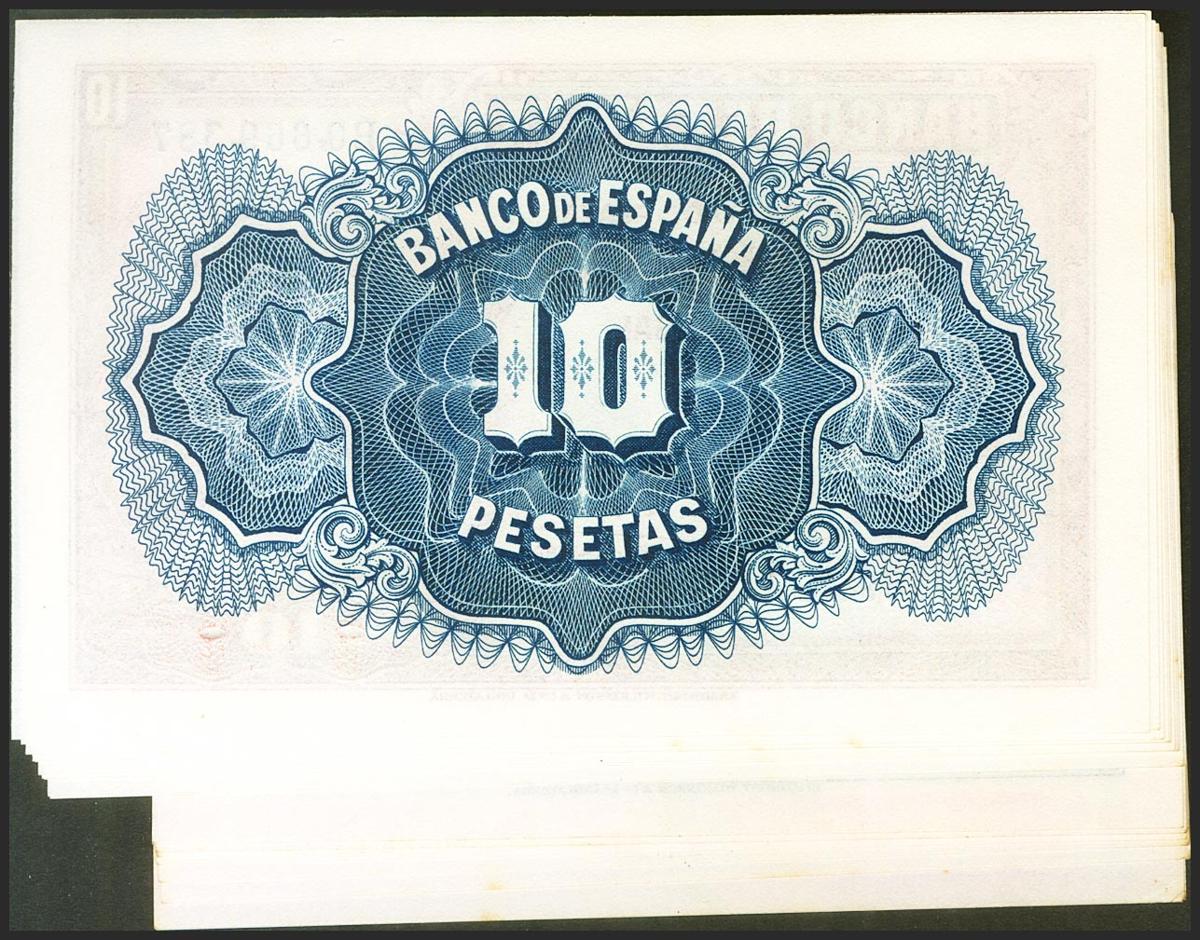 Set of 10 correlative banknotes of 5 Pesetas and 10 Pesetas Silver Certificate, issued in 1935 and both with the B series (Edifil 2021: 2021: 363a, 364a), preserving all its original size. Uncirculated/ Almost Uncirculated.