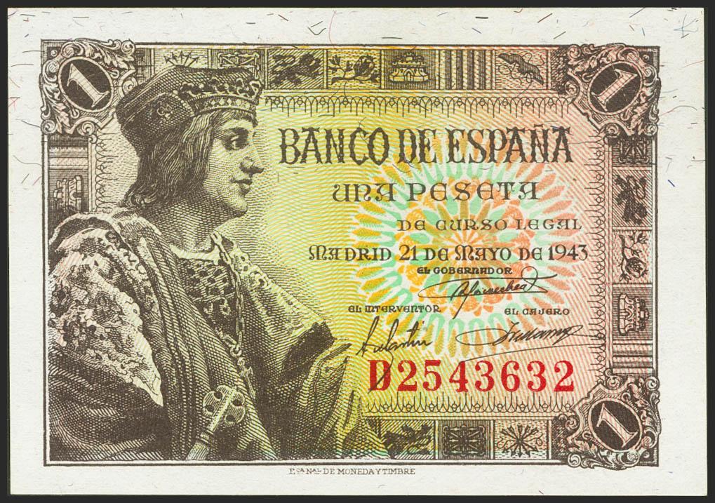 1 peseta. May 21, 1943. Series D. (Edifil 2021: 447a). original sizing Uncirculated.