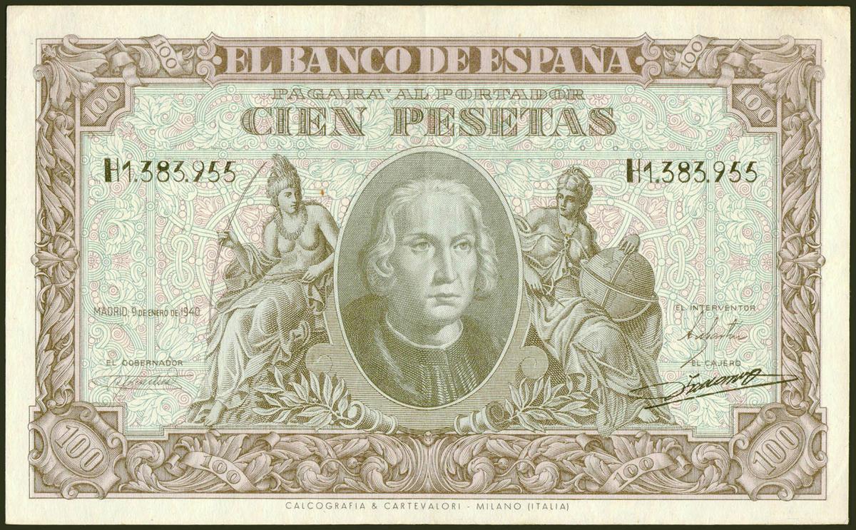 English 100 pesetas. January 9, 1940. Series H. (Edifil 2021: 438a). It retains all its original sizing. Extremely Fine.