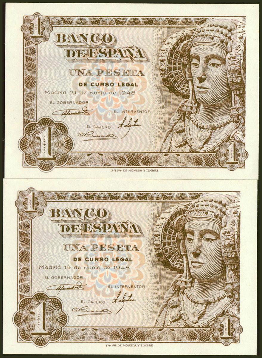 English 1 peseta. June 19, 1948. Correlative couple. They laugh. (Edifil 2021: 457a). original sizing Uncirculated.