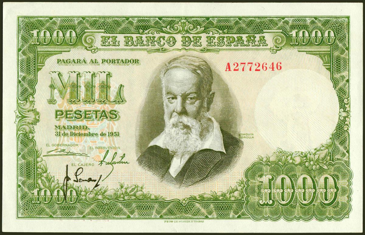 1000 pesetas. December 31, 1951. Series A. (Edifil 2021: 463a). It retains much of its original size. Extremely Fine.