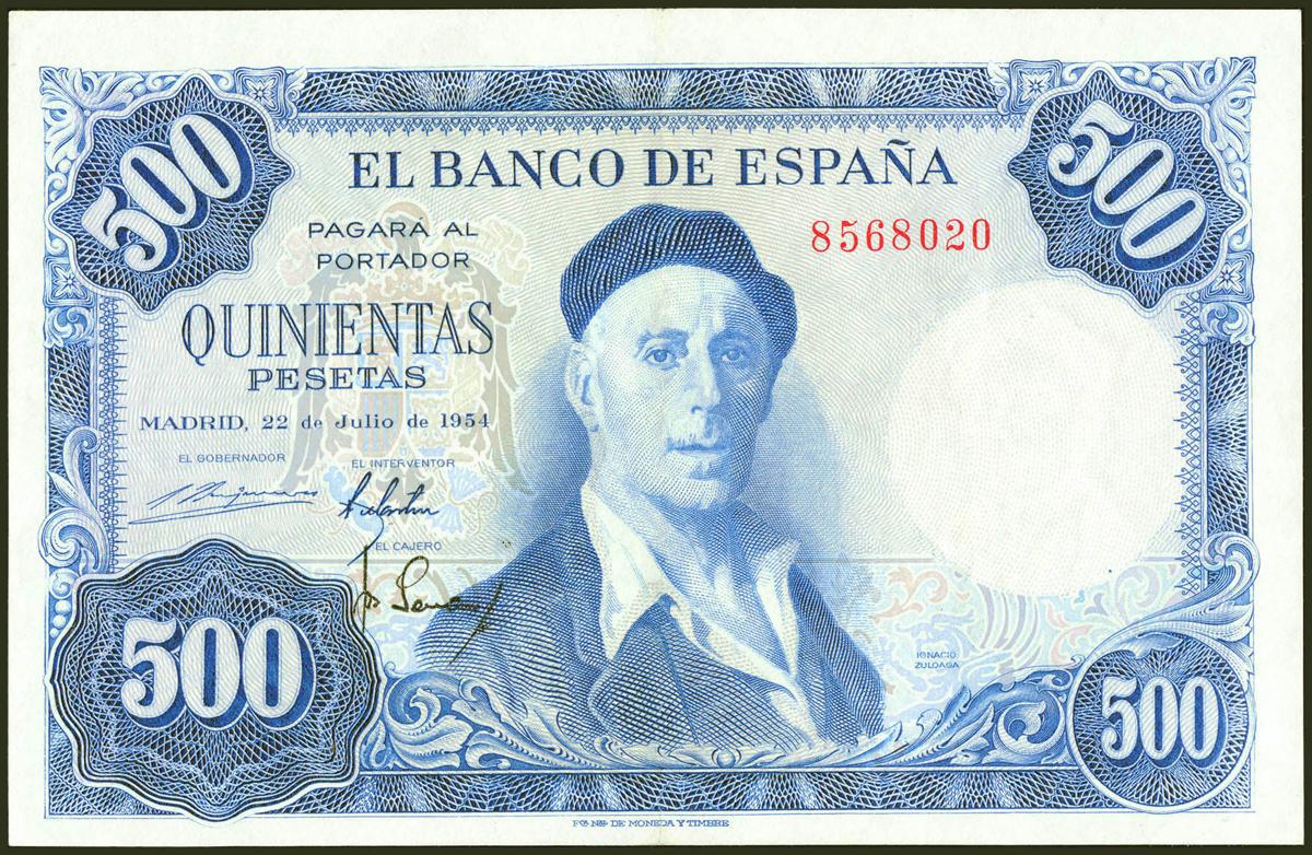500 pesetas. July 22, 1954. No series. (Edifil 2021: 468). Unusual, it retains part of its original sizing. Almost Extremely Fine.