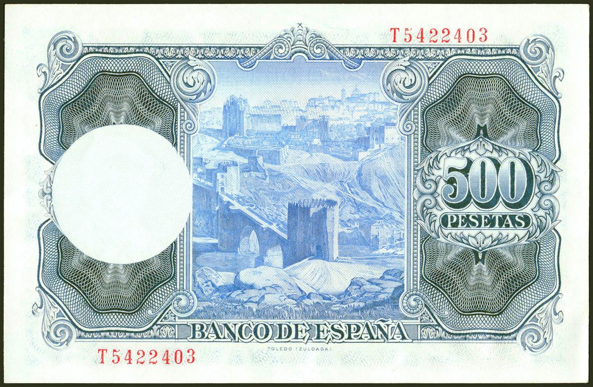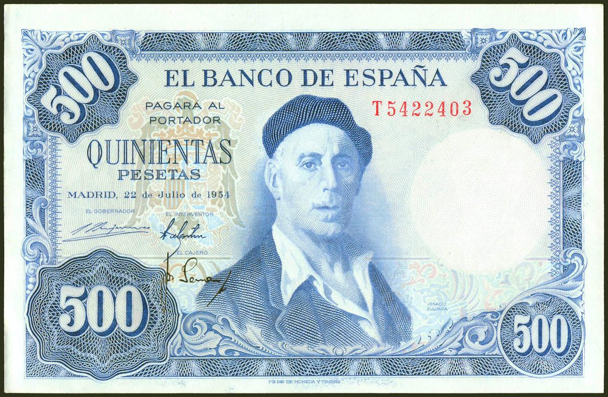 500 pesetas. July 22, 1954. Series T. (Edifil 2021: 468b). It retains all its original sizing. Almost Uncirculated.