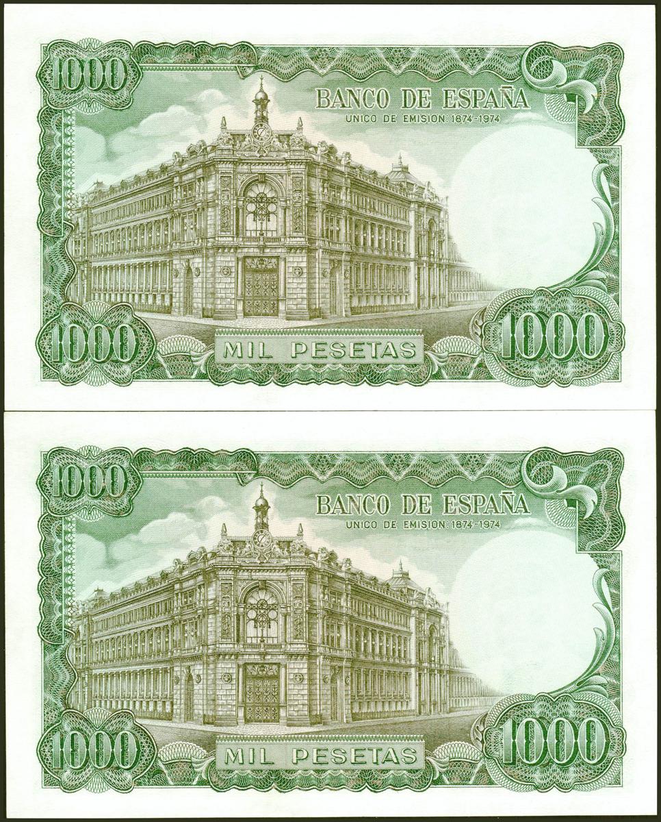 1000 pesetas. September 17, 1971. Correlative couple. No serie. (Edifil 2021: 474). It retains all its original sizing. Almost Uncirculated.