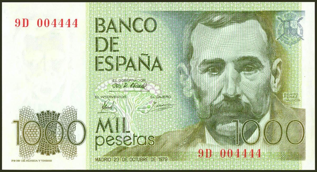 1000 pesetas. October 23, 1979. Special series 9D and very low numbering. (Edifil 2017: 477b). Very rare, natural ripple from the manufacturing process (this is the only reason to "remove" the Uncirculated) EBC+++.