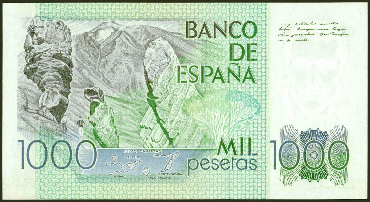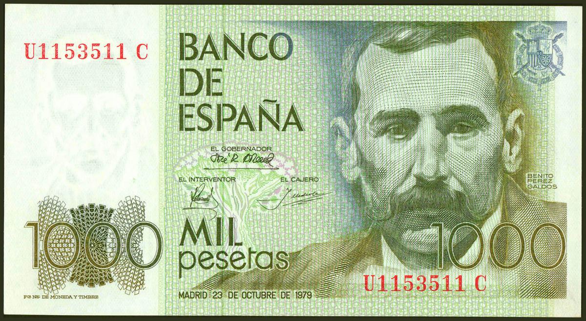 1000 pesetas. October 23, 1979. UC Series and palindrome numbering. (Edifil 2021: 477a). Uncirculated.