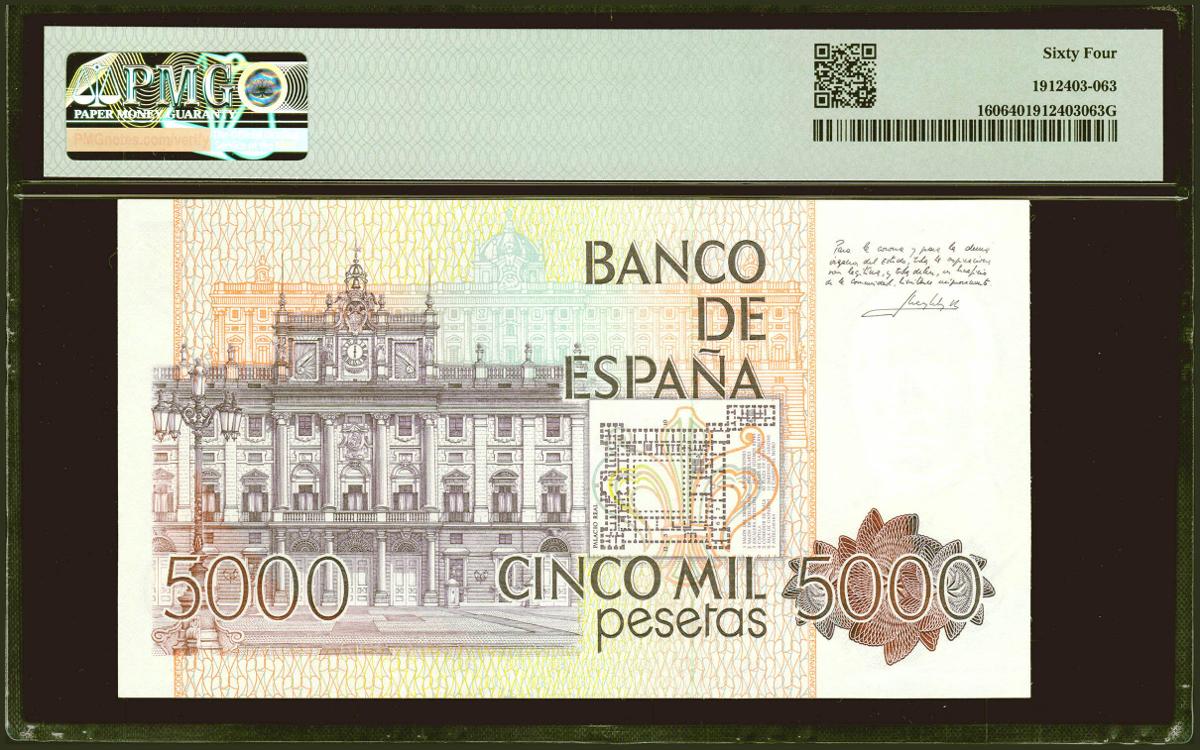 5000 pesetas. October 23, 1979. HB series. (Edifil 2021: 478a, Pick: 160). Uncirculated. PMG64 Encapsulation