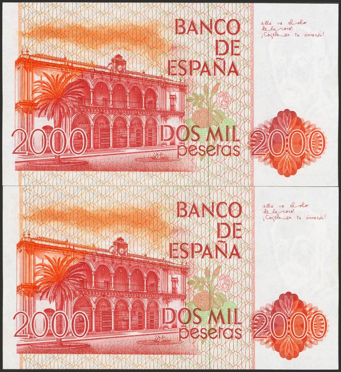 2000 pesetas. July 22, 1980. Correlative couple. 1J series. (Edifil 2021: 479a). Uncirculated.
