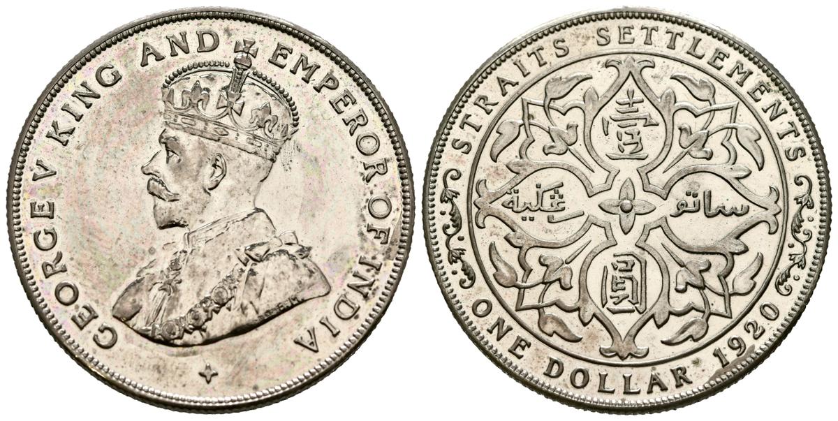 English STRAIT SETTLEMENTS. 1 Dollar (Arm. 16.88g/34mm). 1920. Jorge V. (Km#33). Almost Extremely Fine. polished.