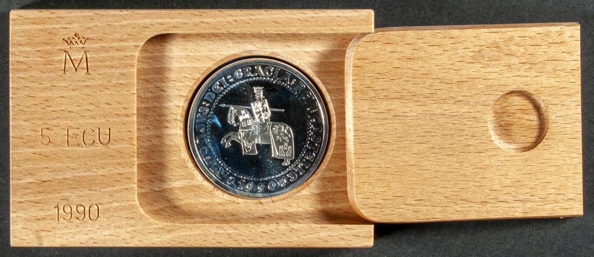 JOHN CARLOS I (1975-2014). 5 Ecu. (Arm. 33.62g/42mm). 1990. FNMT. Alfonso X the Wise. FDC. Includes original box and certificate of authenticity. Print run of 50,000 copies.