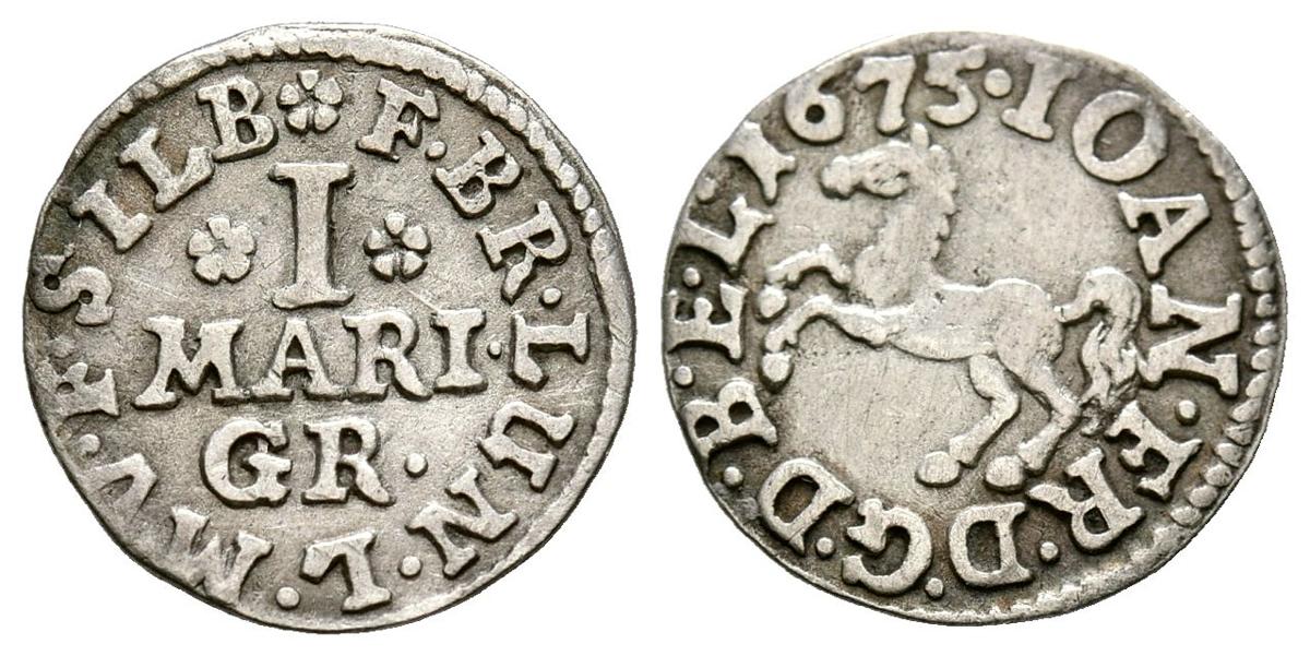 GERMANY, Prince of Lüneburg Johann Friedrich (1665-1679). 1 Mariegroschen. (Ar. 0.60g/13mm). 1675. Lüneburg. (Km#164). Good Very Fine.